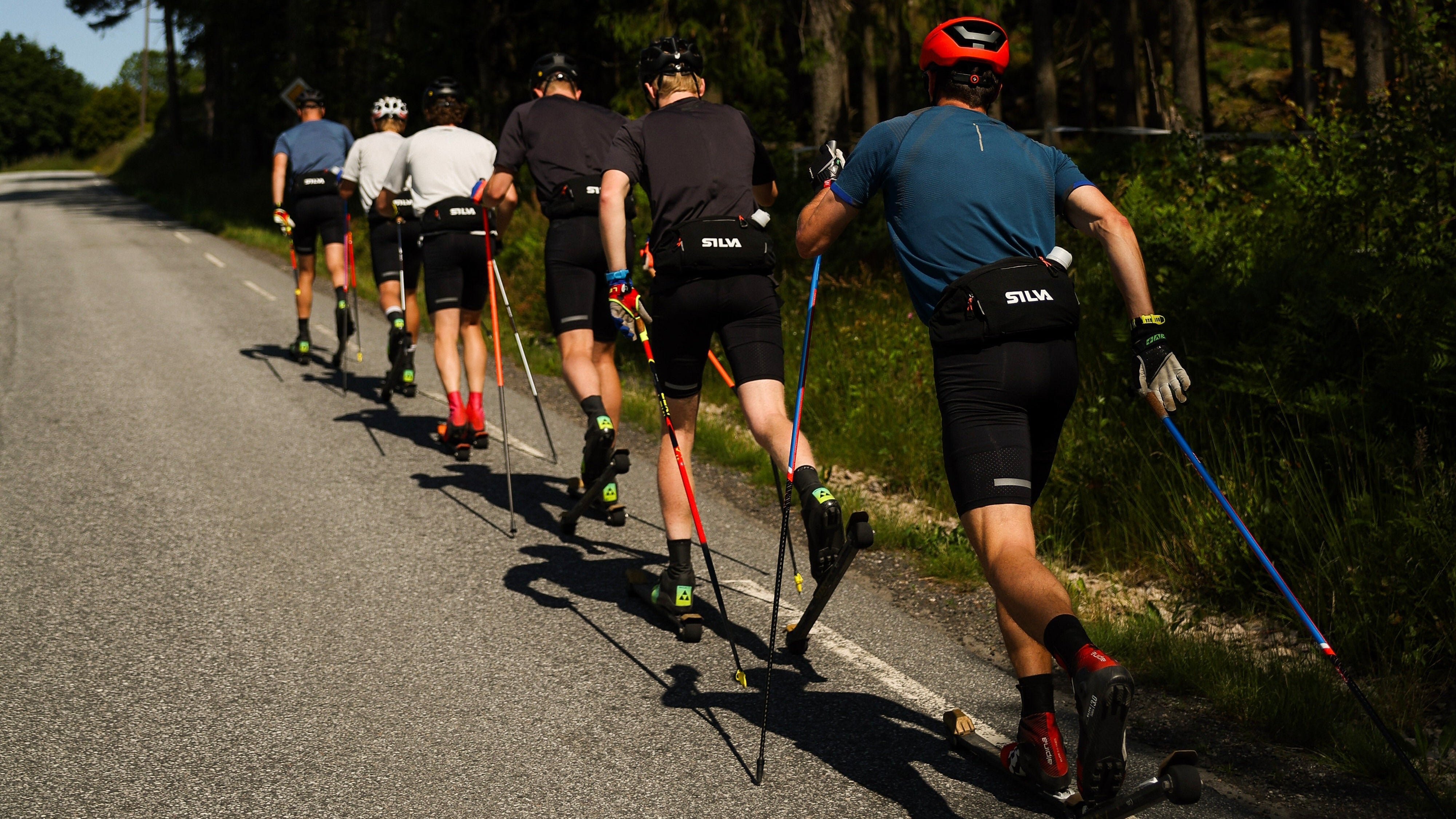 3–5 pass i veckan, där de flesta bör vara skidrelaterade. Kombinera längre lugna pass med kortare, hårdare intervaller för att vänja kroppen vid olika tempon och belastningar.