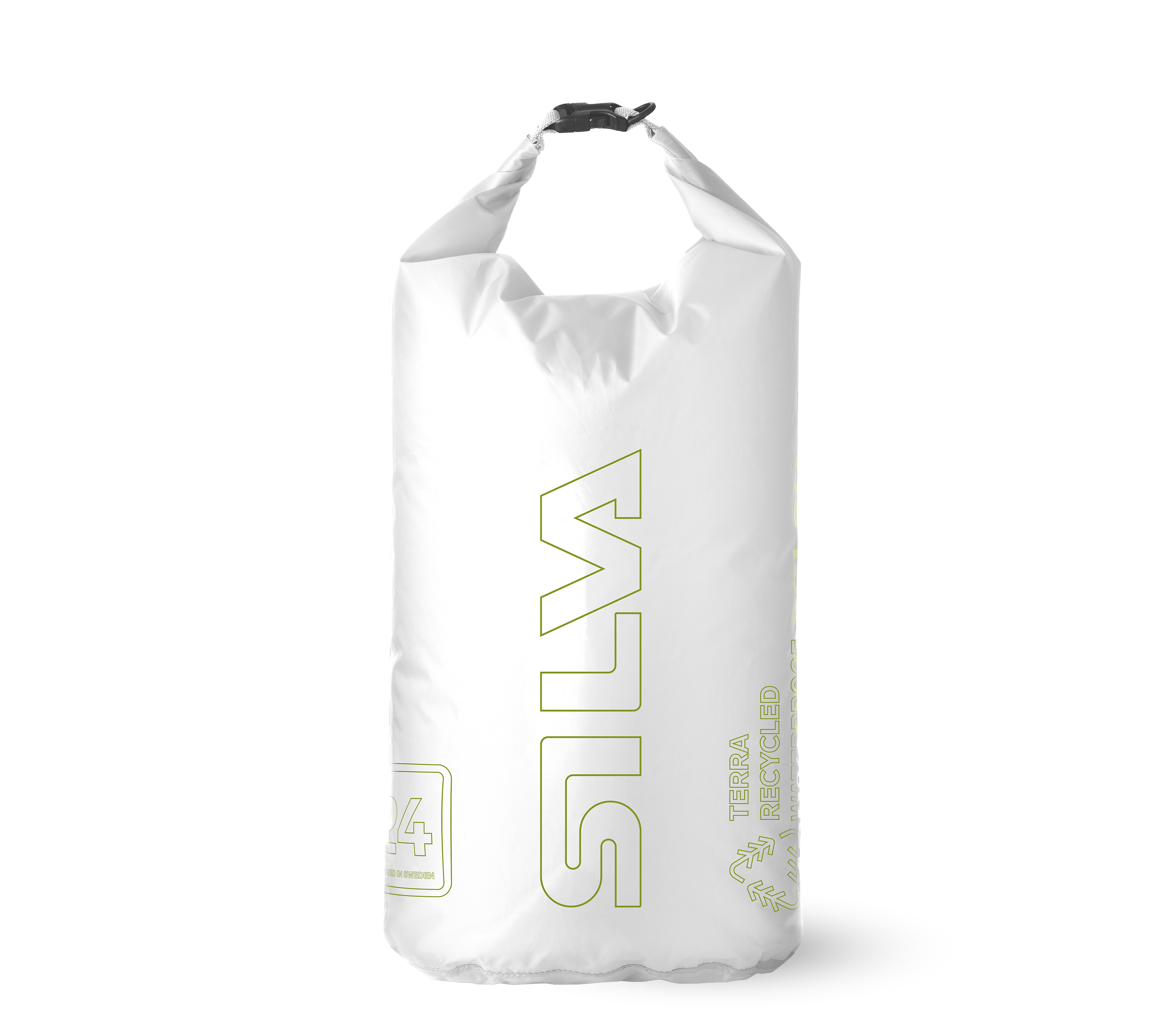 Terra Dry Bags är lätta, tåliga och gjorda av 100% återvunnet PET-material. Dessutom har vi minimerat infärgning och tryck för att ytterligare minska klimatavtrycket.
