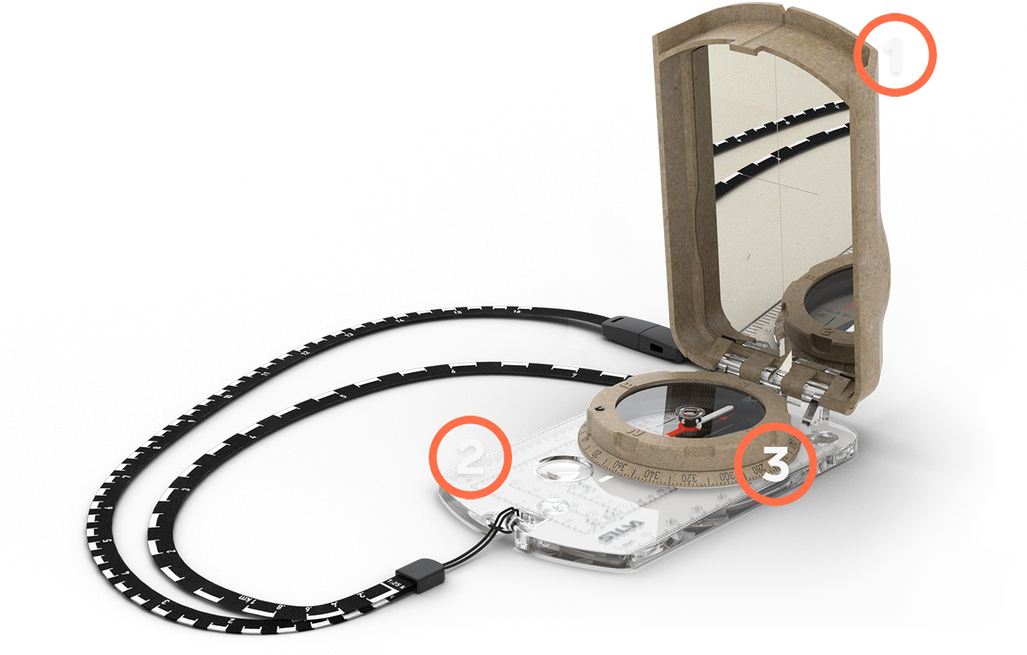 1. Kompass med spegel, perfekt för att ta ut riktning på långa avstånd i öppen terräng.