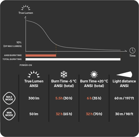 | Lumen (Max mode) | 300 |